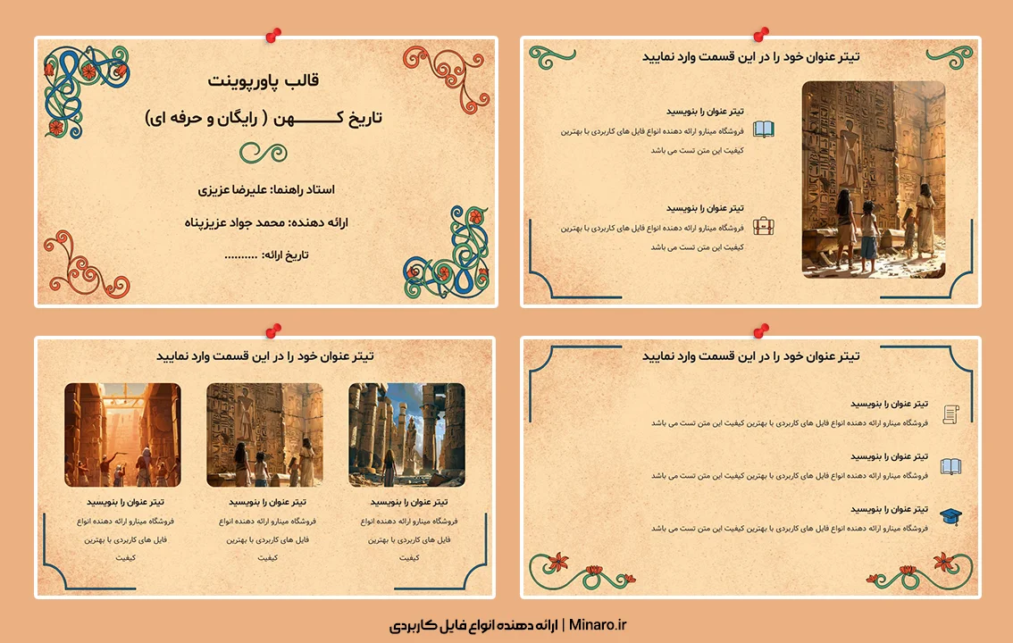 ویژگیهای تم پاورپوینت تاریخ کهن و قدیم ایران و جهان رایگان