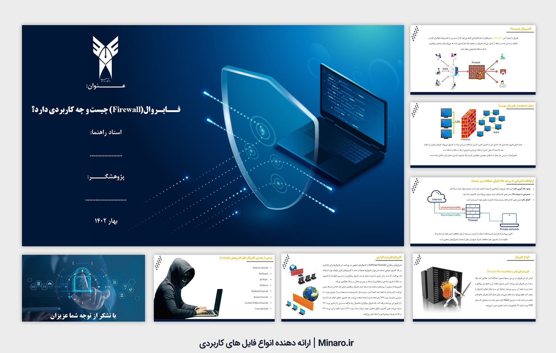 پاورپوینت فایروال (Firewall) چیست و چه کاربردی دارد؟ از جمله پاورپوینت مهم و حیاتی بوده که افراد فعال در حوزه کامپیوتر و فناوری به آن نیاز دارند. طراحی پاورپوینت فایروال یا دیوار آتش از جهت پراهمیت بودن این موضوع فایروال شده است.