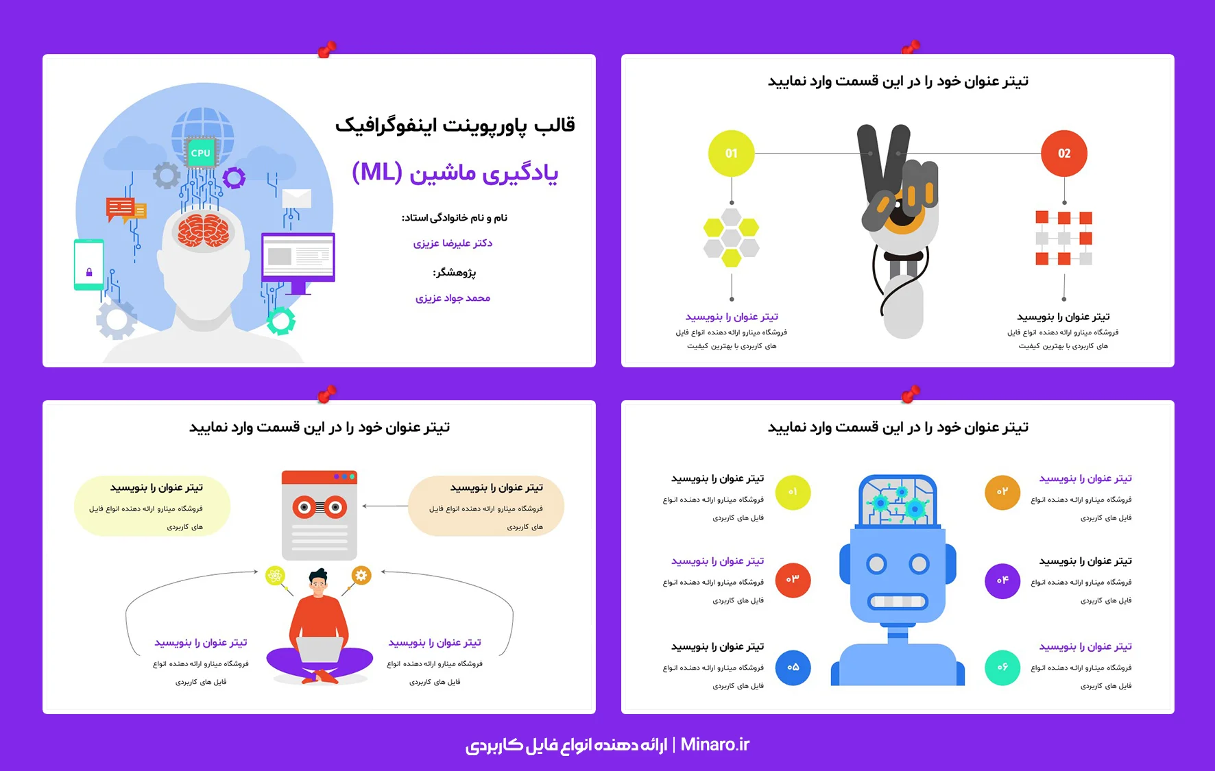 اسلایدهای قالب پاورپوینت اینفوگرافیک یادگیری ماشین رایگان با استانداردترین روشهای طراحی ارائه شده است.