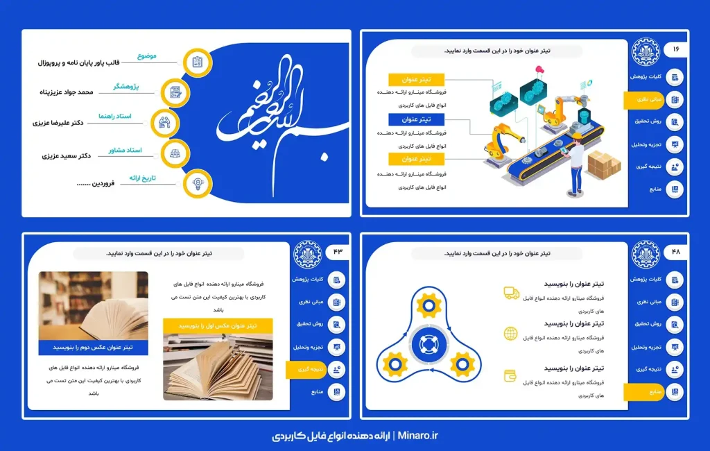 ویژگیهای تمپلیت پاورپوینت حرفه ای دفاع پایان نامه و پروپوزال