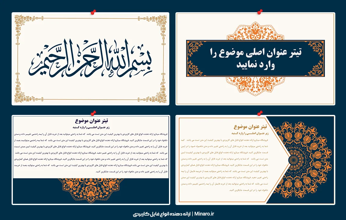 قالب پاورپوینت حرفه ای مذهبی سایت مینارو، قابلیت شخصیسازی دارند و توانسته برای ارائههای مختلف از این قالب پاورپوینت مذهبی استفاده کنید.